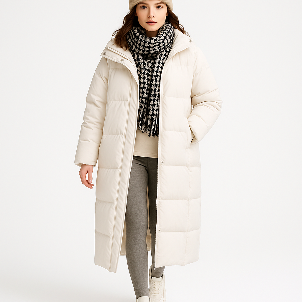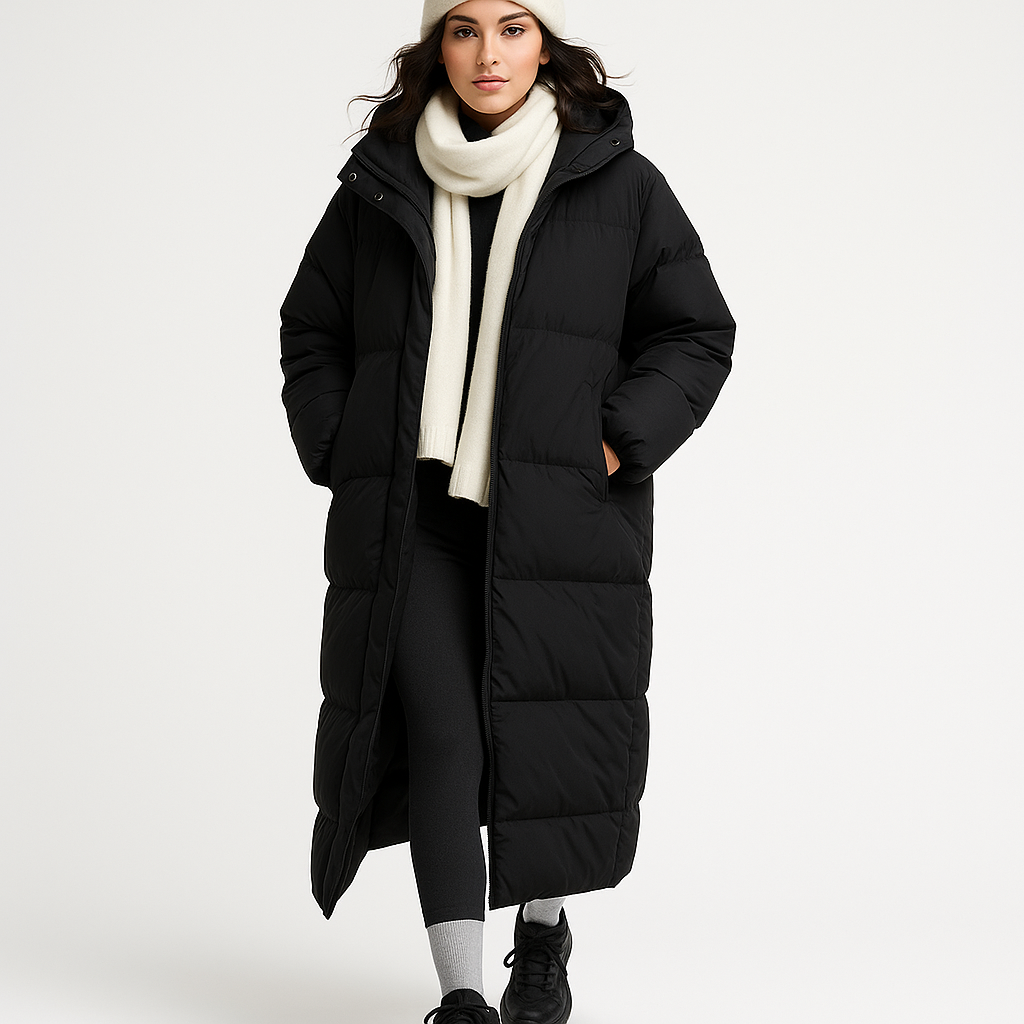 Hold varmen med stil gennem vinteren. Denne lange, foret jakke med hætte kombinerer funktion og komfort i et moderne, minimalistisk design – perfekt til kolde dage og byliv i bevægelse.