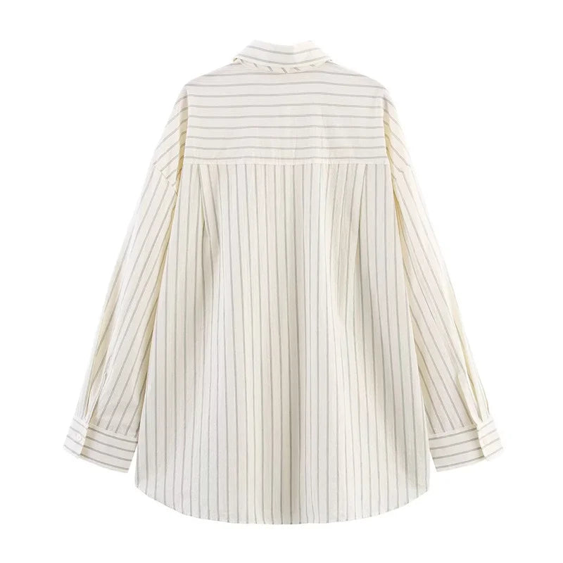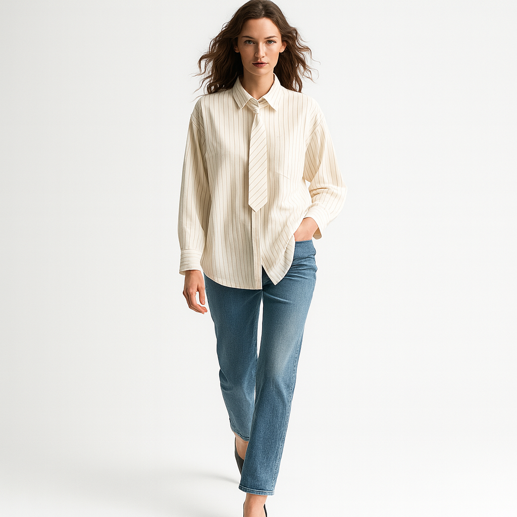 Kvinders skjorte | Stribet design | Løst snit & dekorativ slipse-detalje