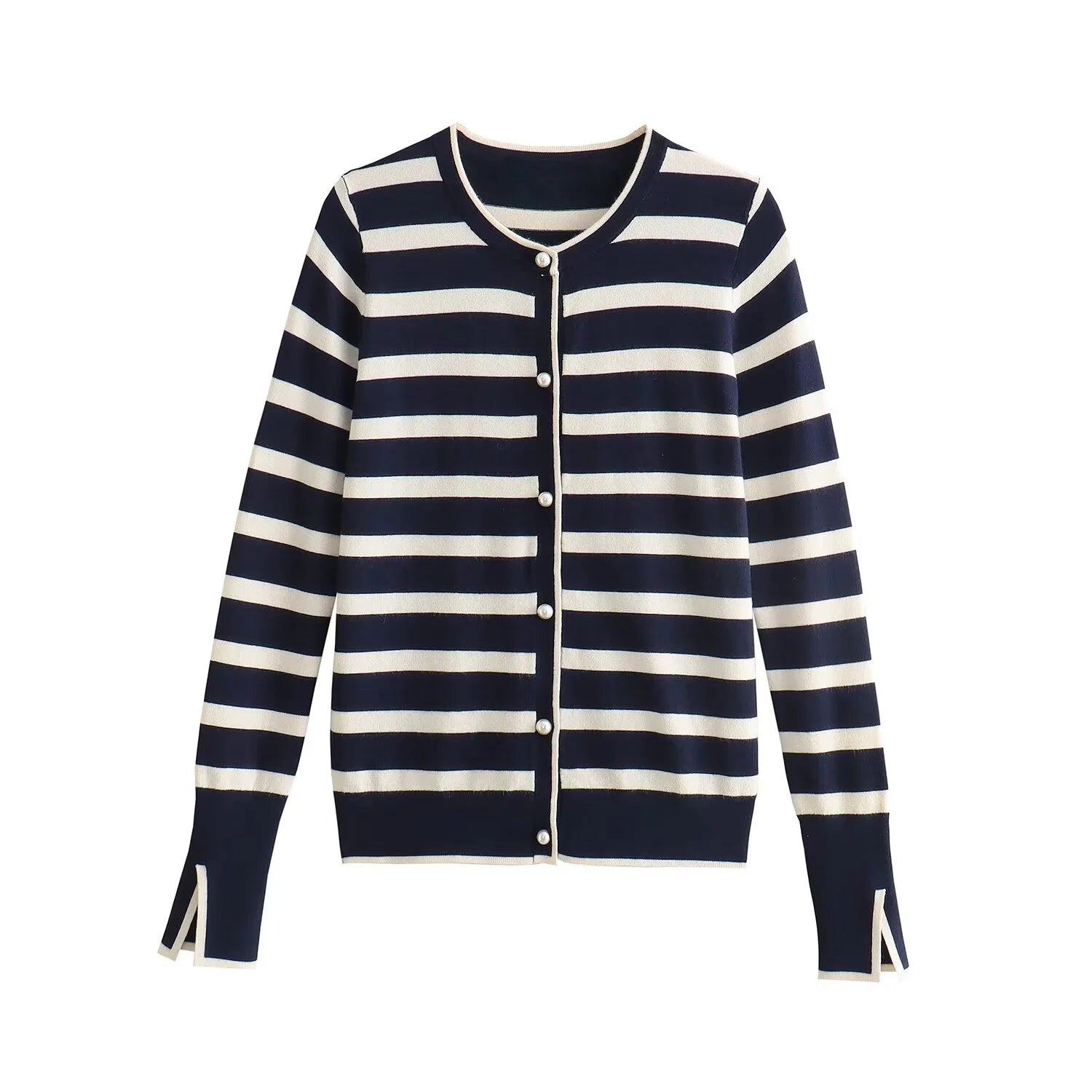 Kvinders strikket cardigan | Stribet design | Let kvalitet & feminin pasform