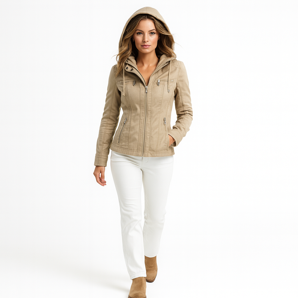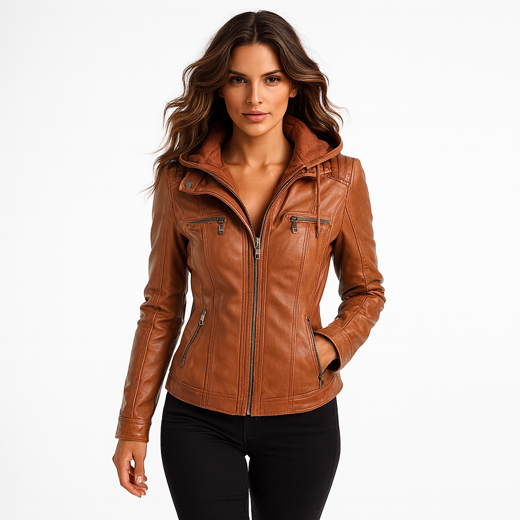 Kvinders Vegansk Læderjakke med Hætte | Slankt Snit | Stilfuld og Holdbar til Efterår og Forår