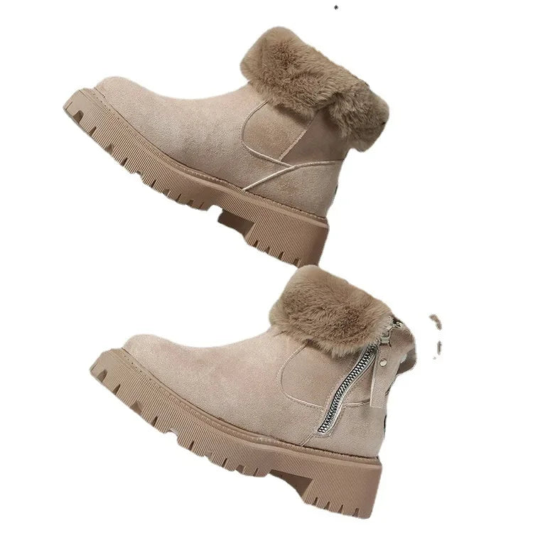 Hold fødderne varme og stilfulde i vinterkulden med disse uldforede sne-støvler. Det afslappede design med rund snude giver et moderne og alsidigt look, mens den bløde foring sikrer komfort hele dagen. Perfekte til både hverdagsbrug og kolde udendørsdage.