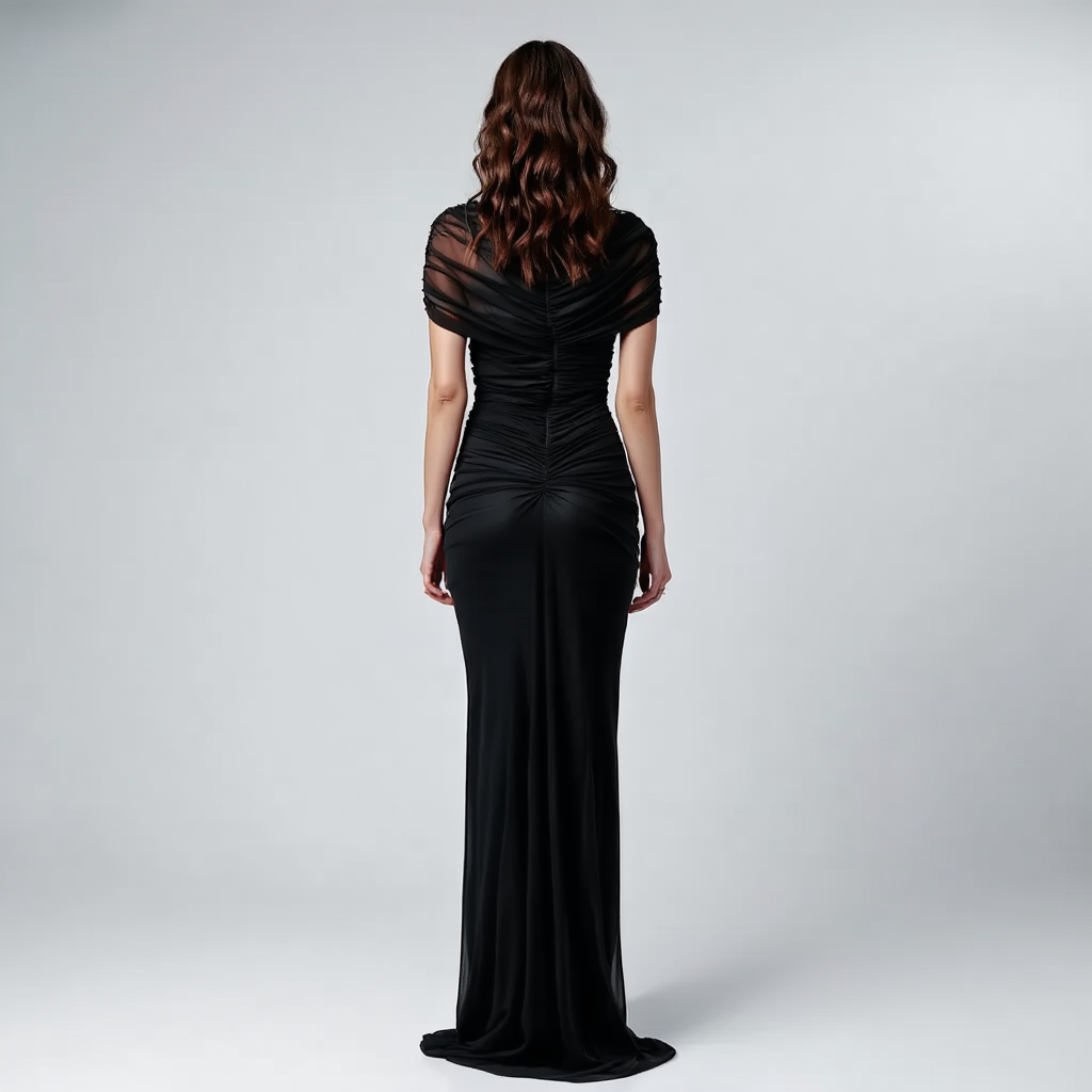 Fremhæv din elegance med denne sofistikerede aftenkjole i mesh og blødt strækstof. Den kombinerer et moderne udtryk med klassisk glamour og er ideel til festlige lejligheder, hvor du ønsker at skille dig ud med stil.