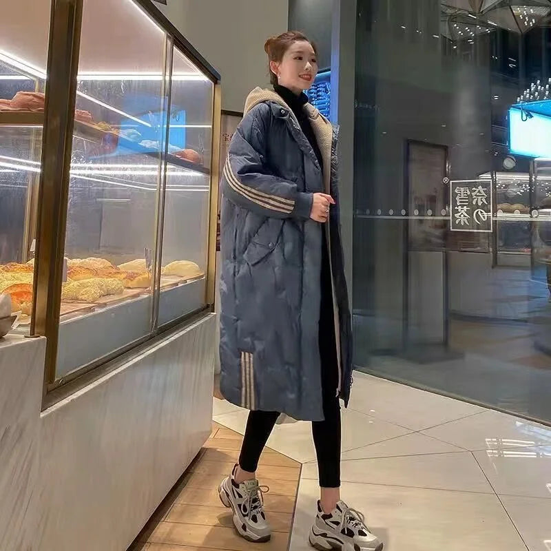 Lang dame dunjakke med hætte | Varm vinterfrakke i let kvalitet | Løs pasform