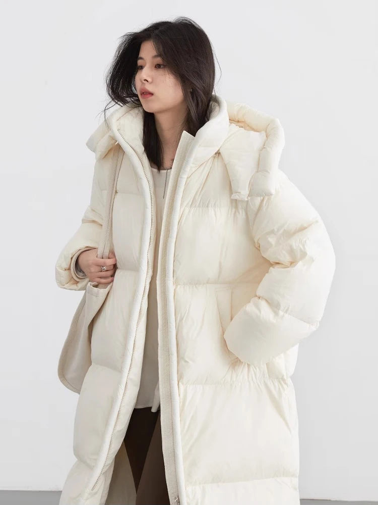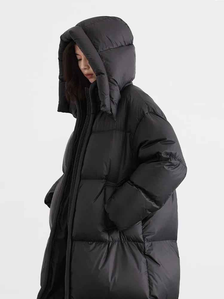 Lang quiltet dunkjakke til kvinder | Varm letvægtskonstruktion | Praktisk hættedesign