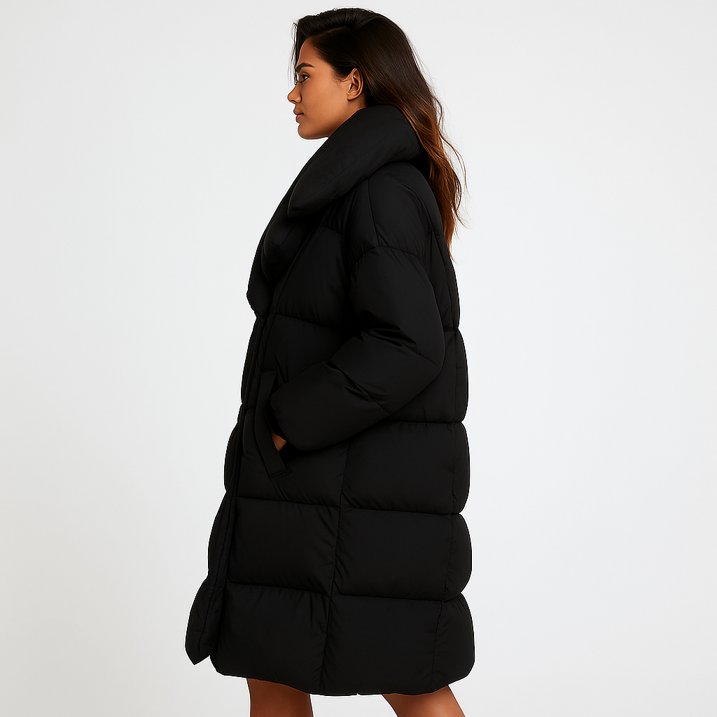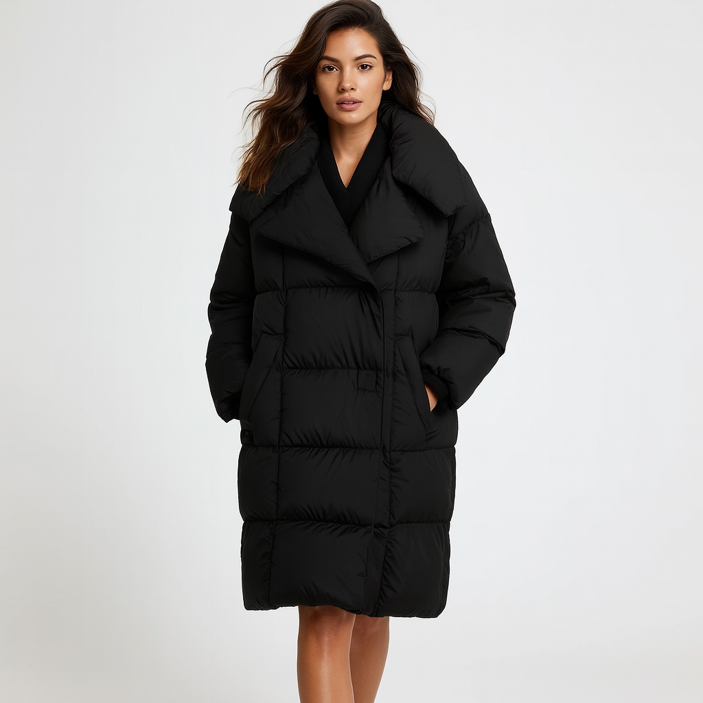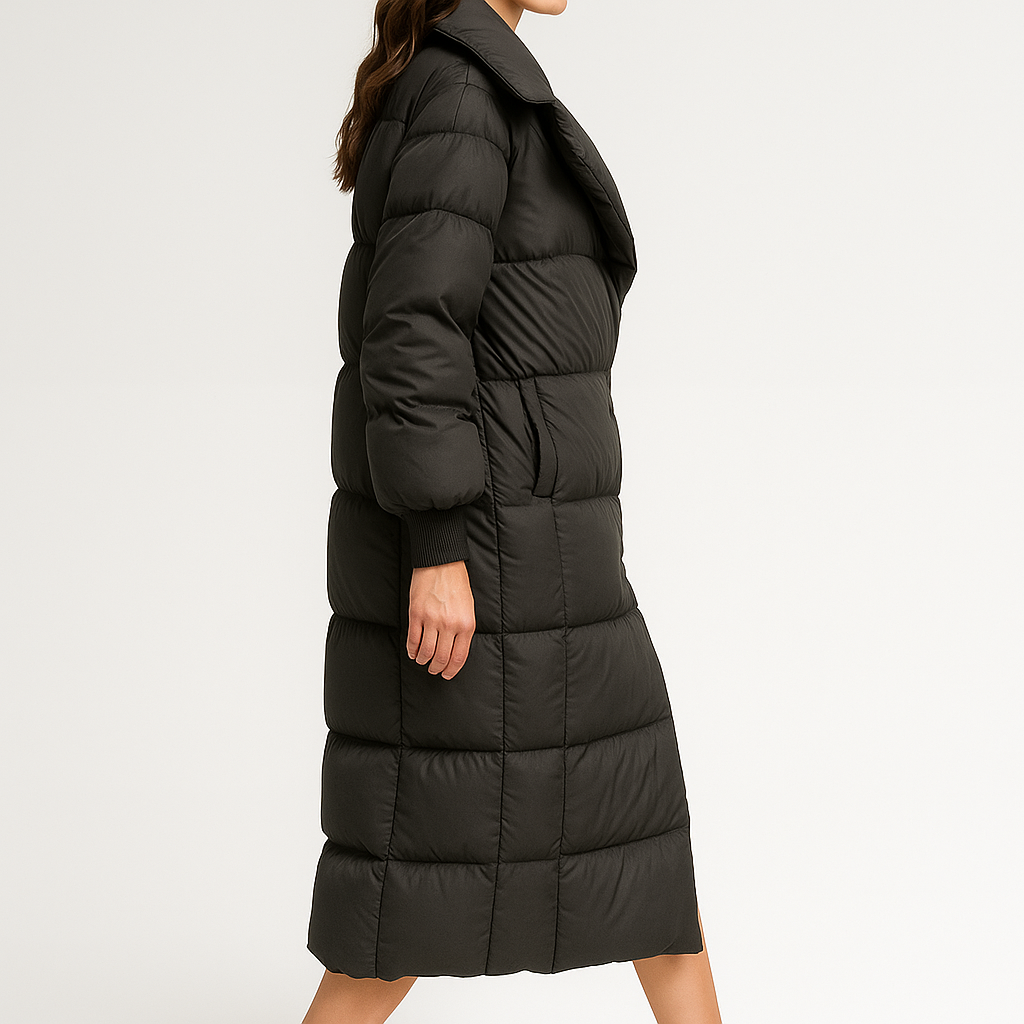 Lang quiltet vinterfrakke til kvinder | Voluminært design | Let og varm