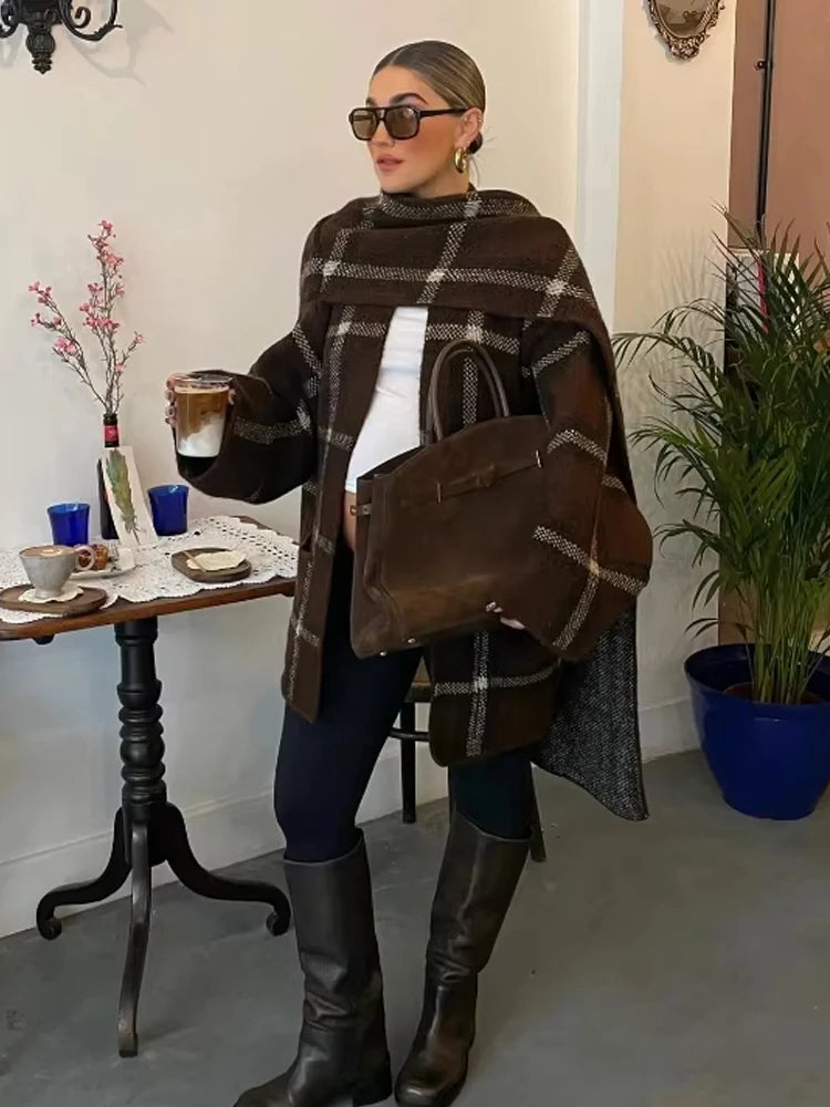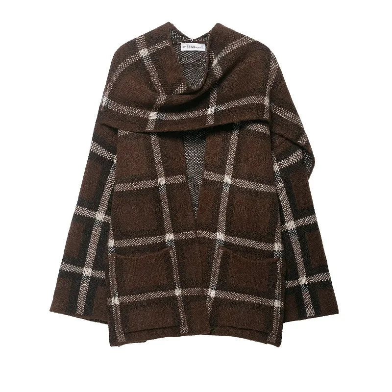 Denne lange frakke med klassisk ternet mønster kombinerer tidløs stil og praktisk varme. Det bløde stof og det integrerede tørklæde giver et elegant og sofistikeret look, mens den åbne front gør den ideel til lag-på-lag styling. Perfekt til kolde dage, hvor du ønsker både komfort og klasse.