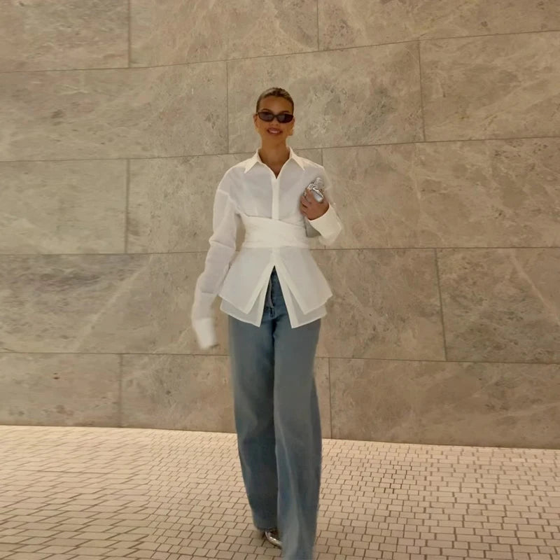 Langærmet Dame Bomuld Skjorte | Turn-Down Krave | Enkel Knaplukning | Slim Fit Afslappet Top