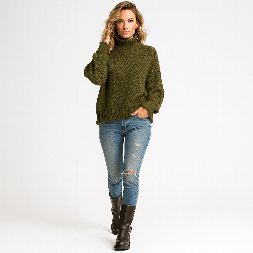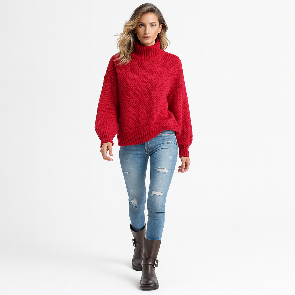 Løs Striktrøje til Kvinder | Blød Rullekrave | Moderne Oversized Pasform