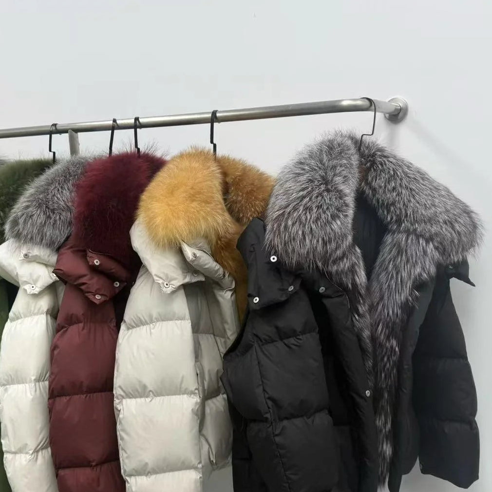 Luksus Dunfrakke med Aftagelige Ærmer | 90% Hvid Gåsedun | Ægte Ræv Krave