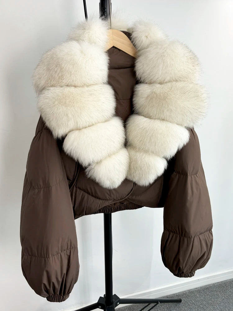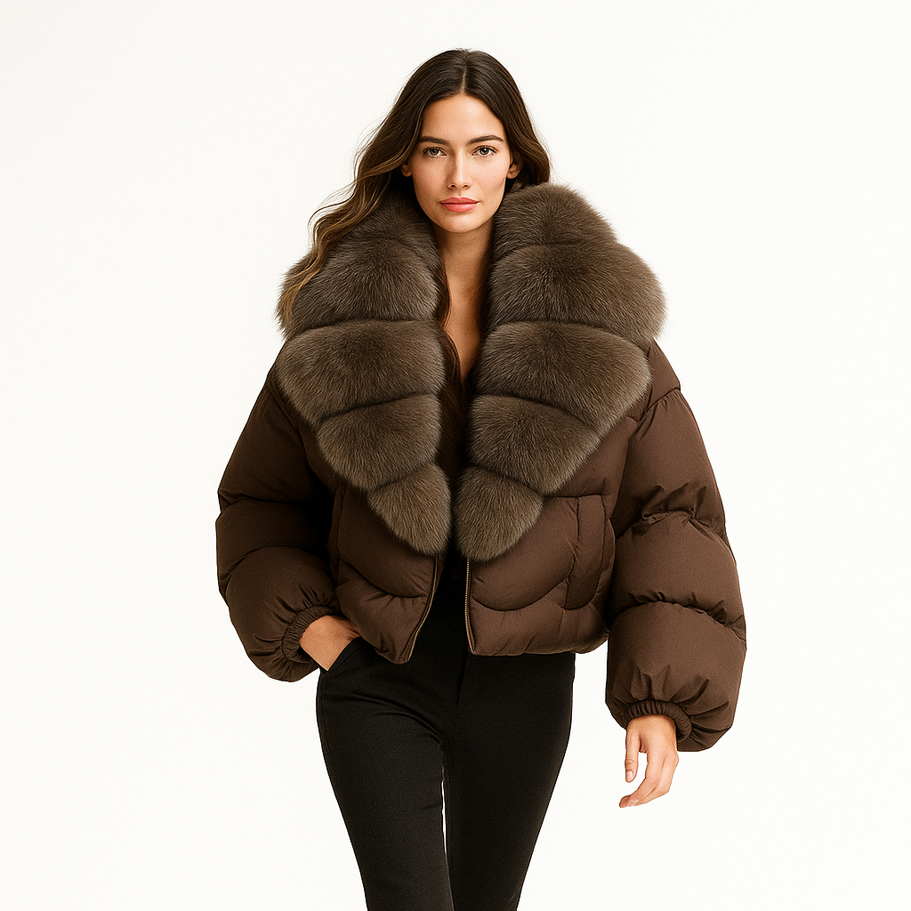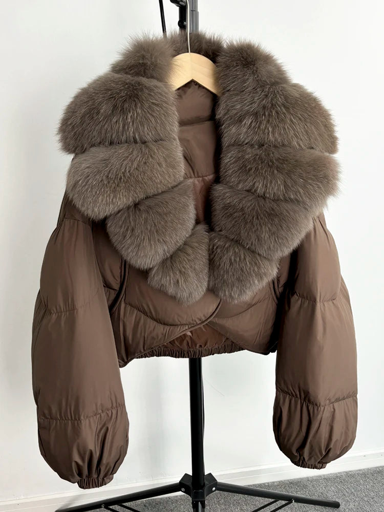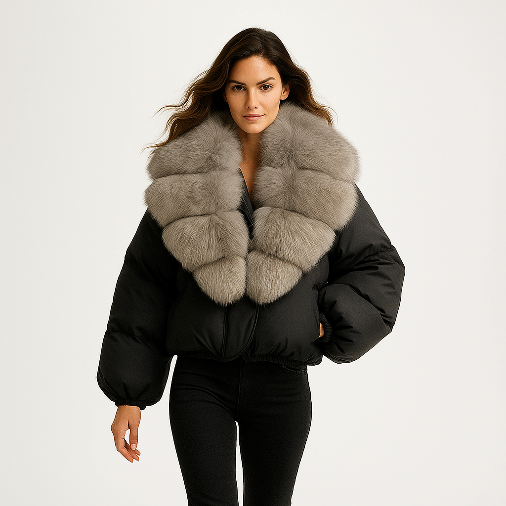 Luxus Dunjakke med Ræv Krave | 90% Andedun | Elegant Vinterkomfort