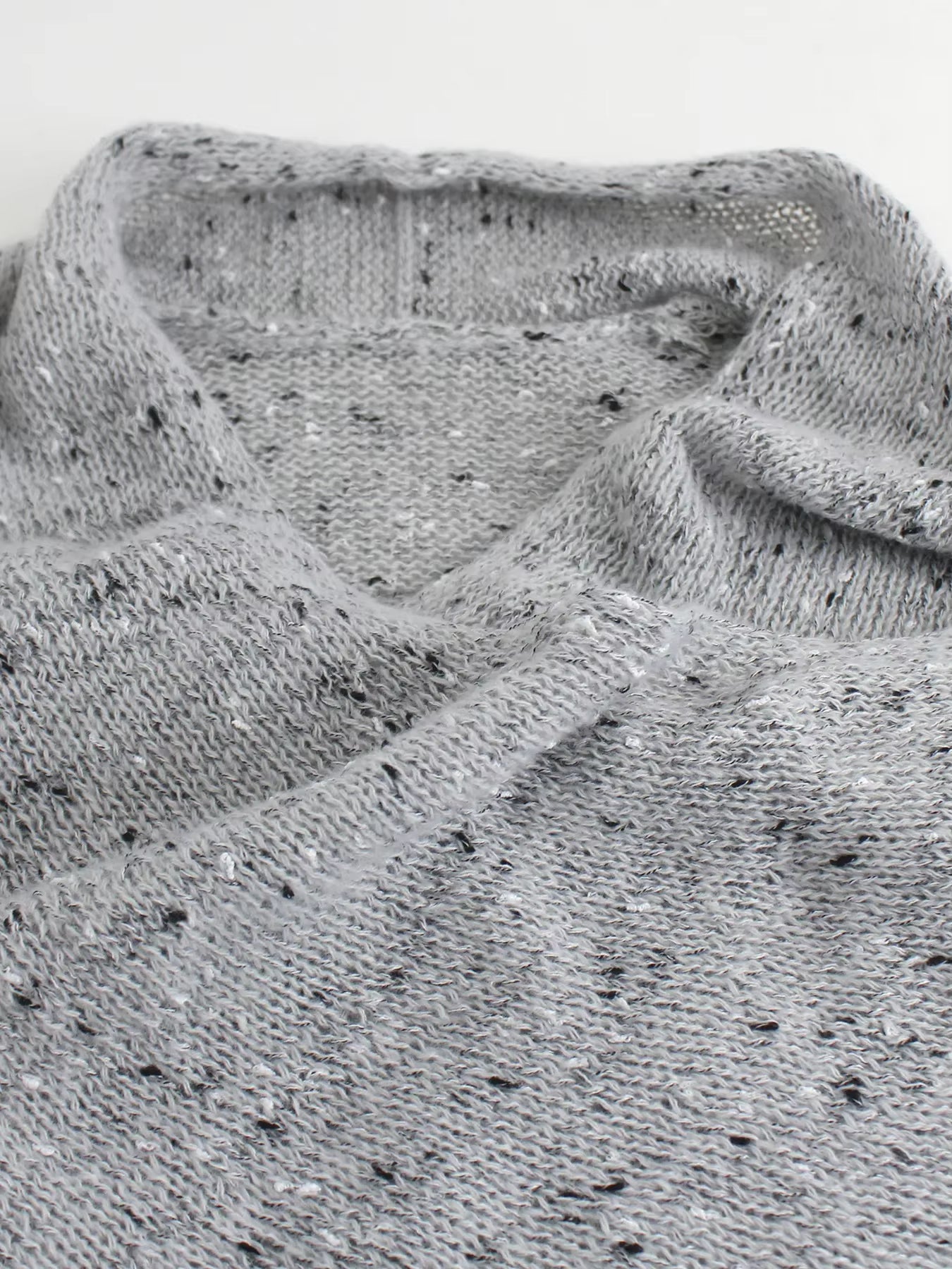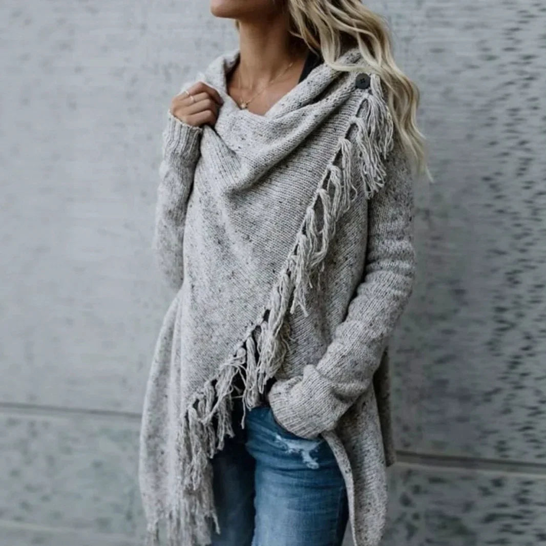 Sjal med draperet halsudskæring og frynser og kvaster