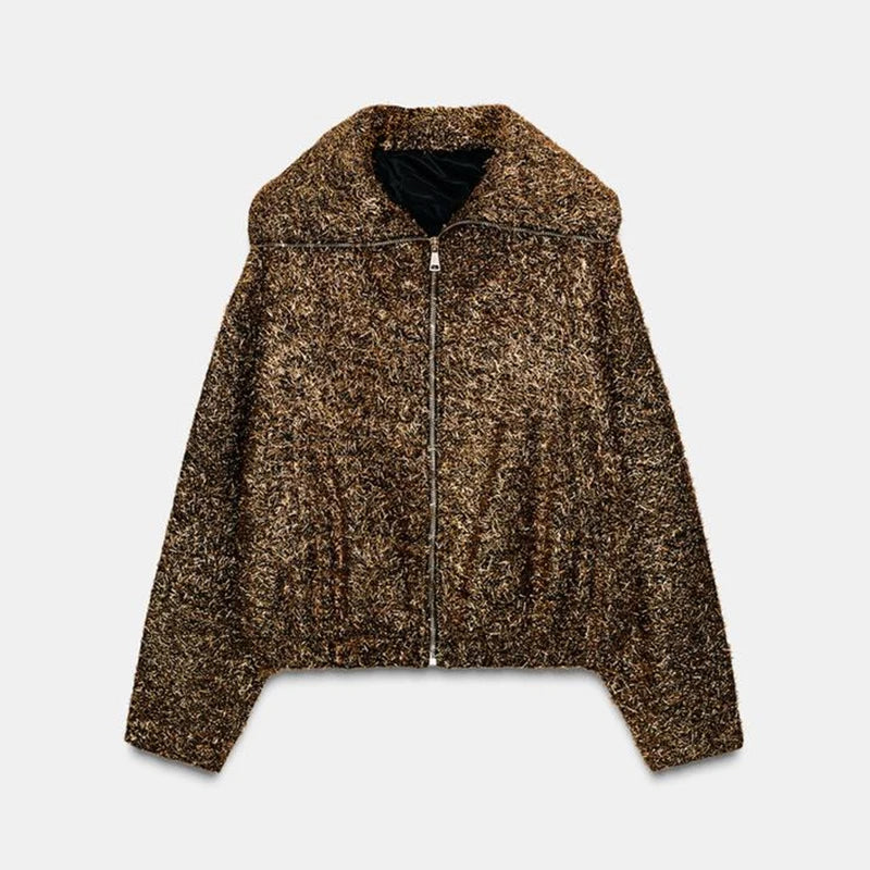 Tilføj et strejf af glamour til din garderobe med denne skinnende jakke, perfekt til fester og særlige anledninger. Det glitrende stof og klassiske snit giver et elegant og moderne udtryk, der fanger lyset ved enhver bevægelse.