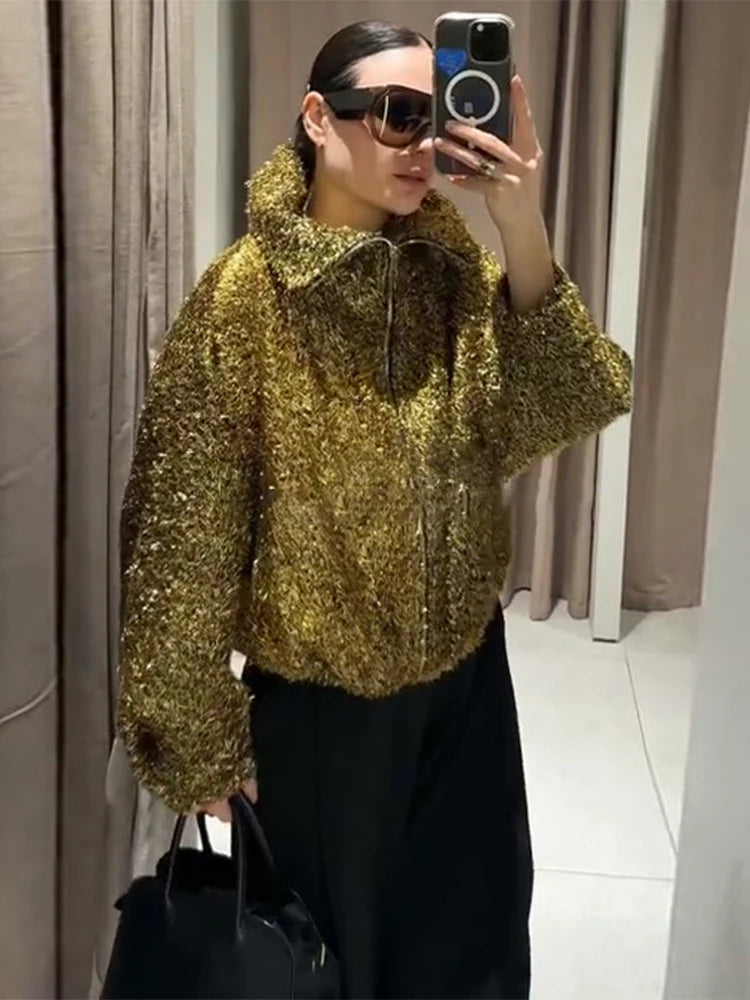 Skinnende festjakke til kvinder | Løs pasform | Elegant design med lange ærmer