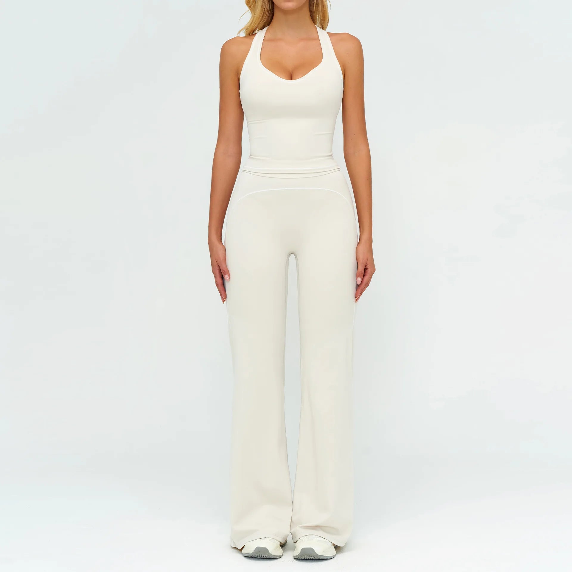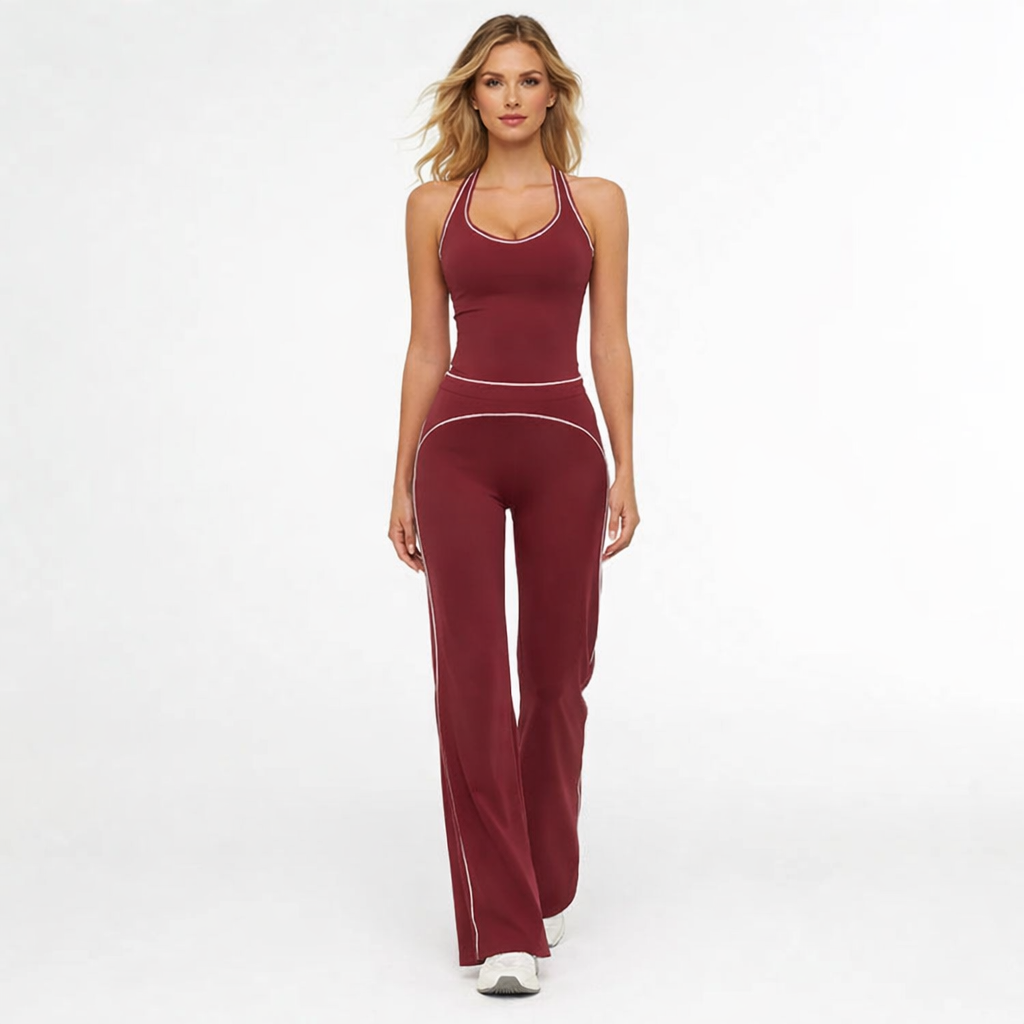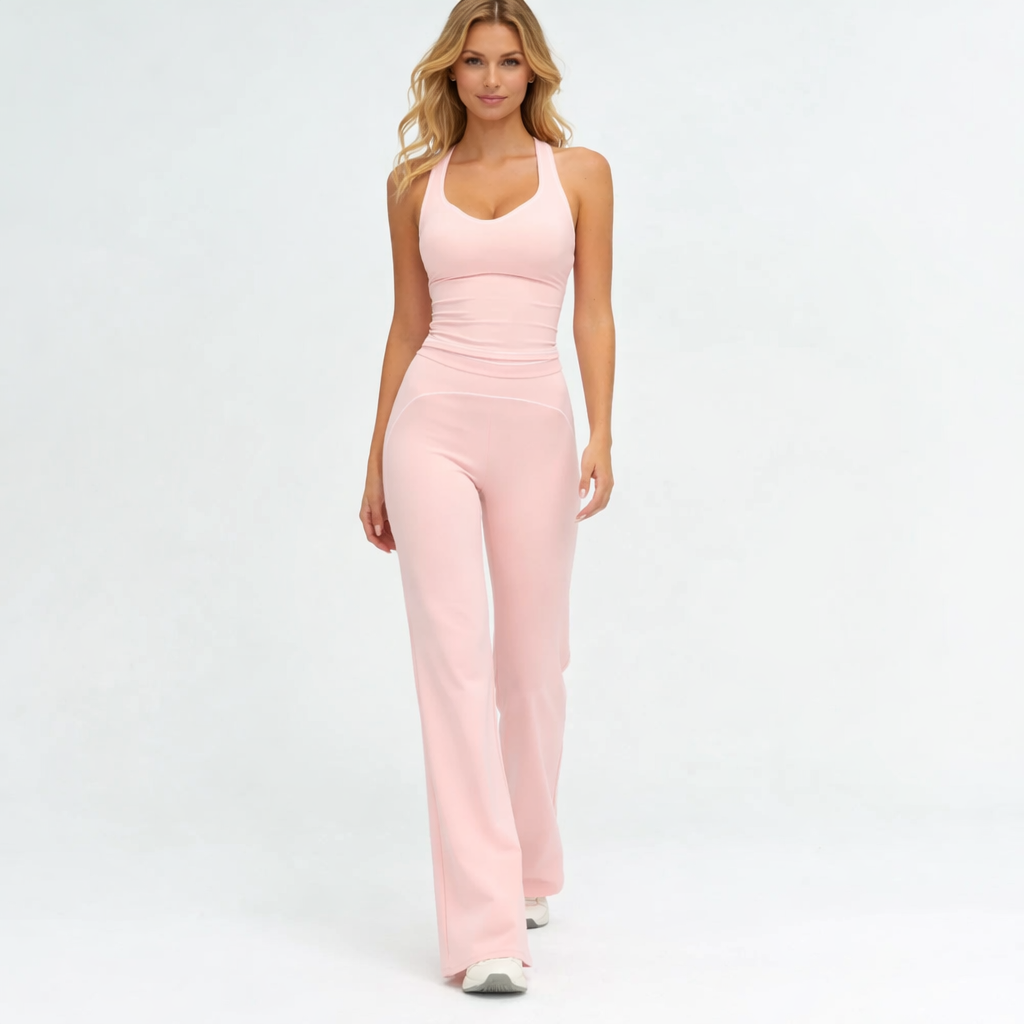 Dette elegante yogasæt kombinerer funktionel komfort med et stilrent og feminint udtryk. Designet til både træning og afslappet hverdagsbrug giver sættet en flatterende silhuet og optimal bevægelsesfrihed. Et alsidigt valg til fitness, yoga og aktive dage.
