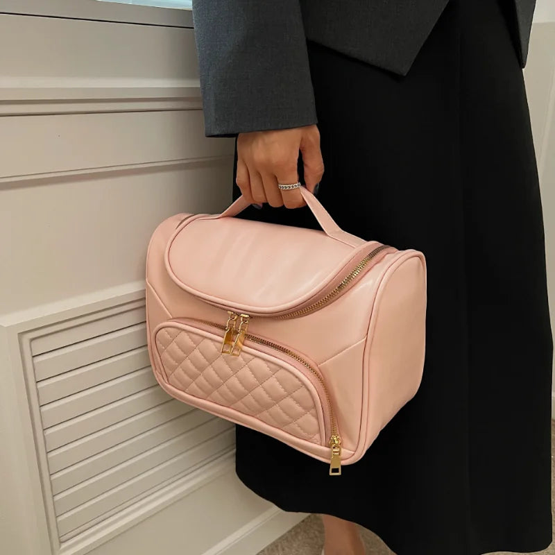Stor Kosmetiktaske til Kvinder | Quiltet Design | Praktisk Opbevaring til Rejse og Hverdag