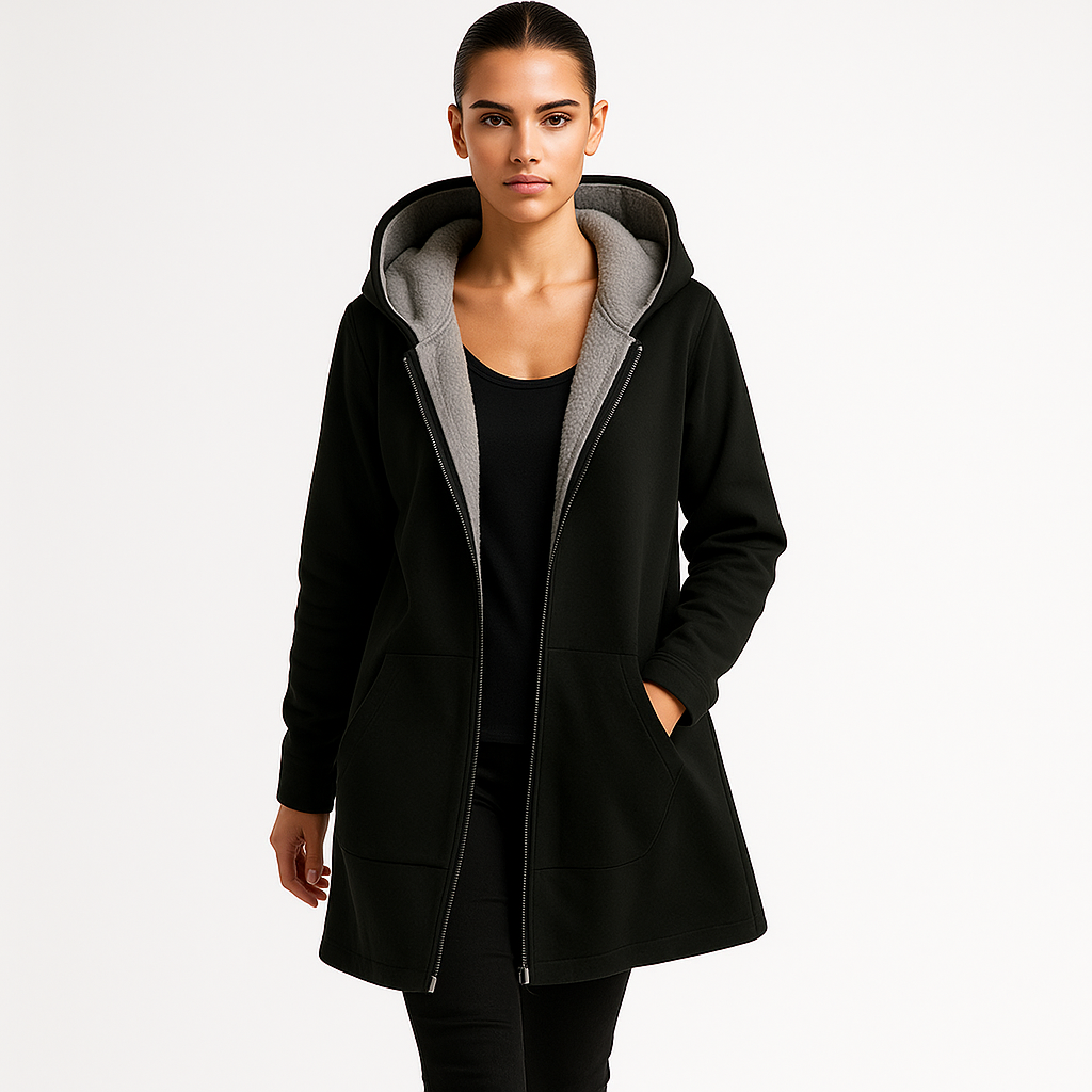 Oplev den perfekte kombination af komfort og stil med denne varme hættejakke til kvinder. Jakken har en blød og fluffy inderside, der holder dig varm på kolde dage, samtidig med at den skaber et afslappet og feminint udtryk.