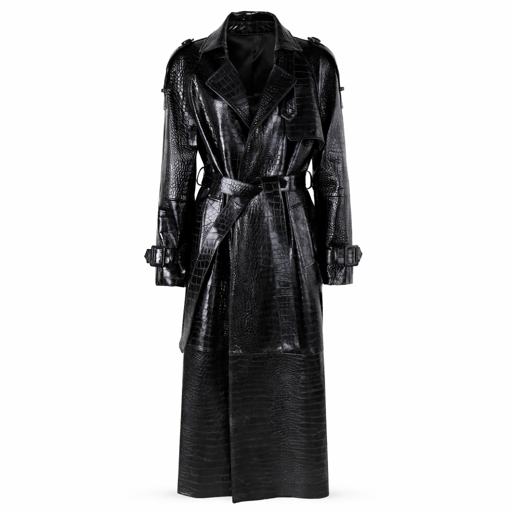 Oplev tidløs elegance og funktionel luksus med denne lange trenchcoat i ægte læder. Designet kombinerer et raffineret udtryk med komfort og bevægelsesfrihed, hvilket gør den ideel til både hverdagsbrug og mere stilfulde anledninger. Den vindafvisende kvalitet gør den samtidig perfekt til skiftende vejr.