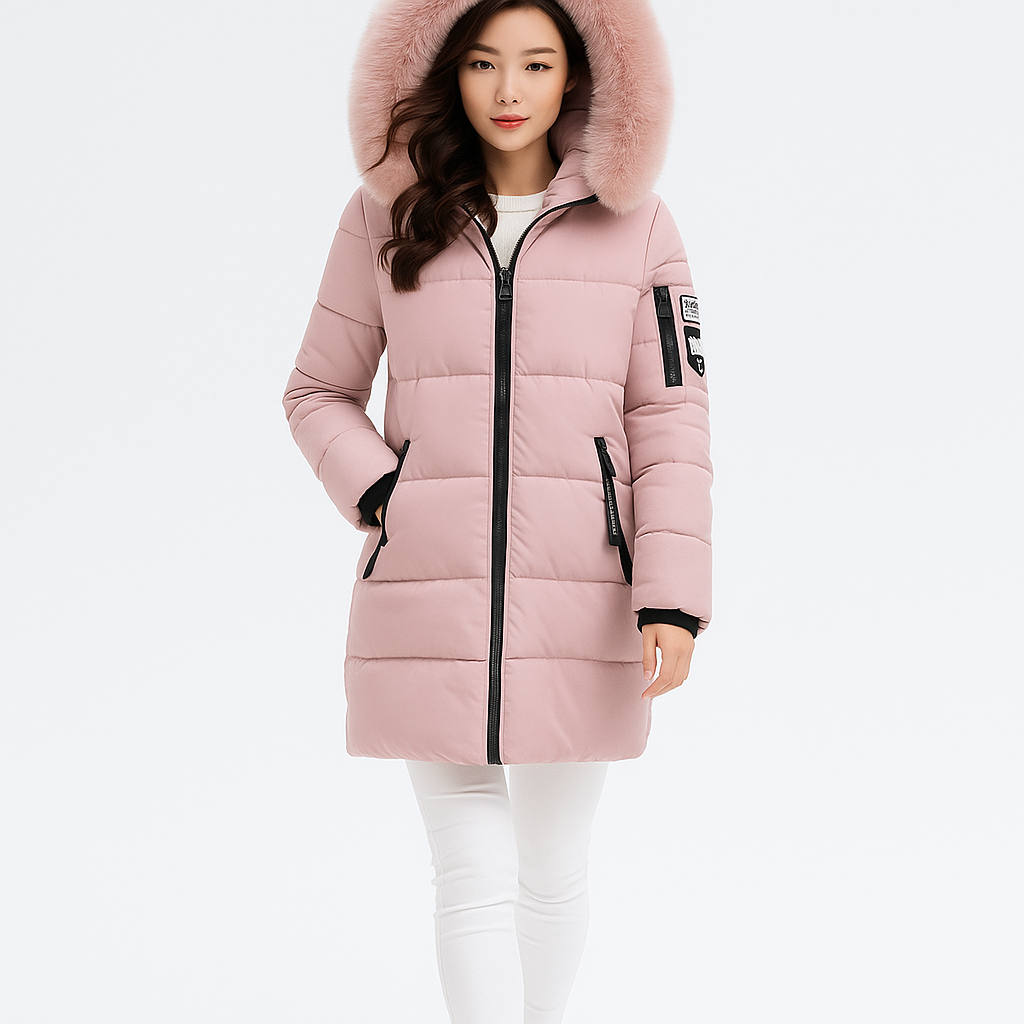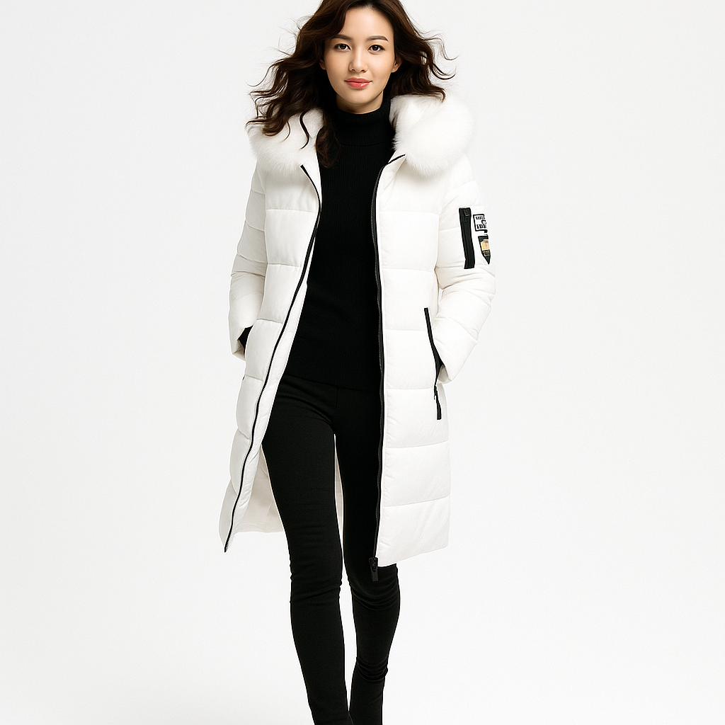 Vinterjakke til kvinder med pelskrave og hætte | Lang, varm og elegant parka